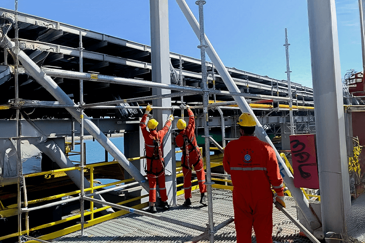 Assembly, piping, access solutions, sandblasting/painting, tank and storage tank cleaning, mechanical work, load testing, material supply, docking support, inspection, and engineering… Single or integrated scope under one roof, tailored to your needs.